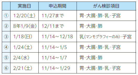 ※検診日時・項目によっては予約枠が終了している場合がありますので、ご了承ください