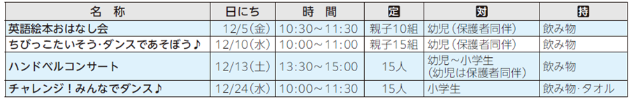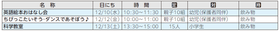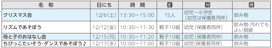 申し込み方法:11月20日9時から各児童館へ電話か直接(申込順。市内在住の方優先)