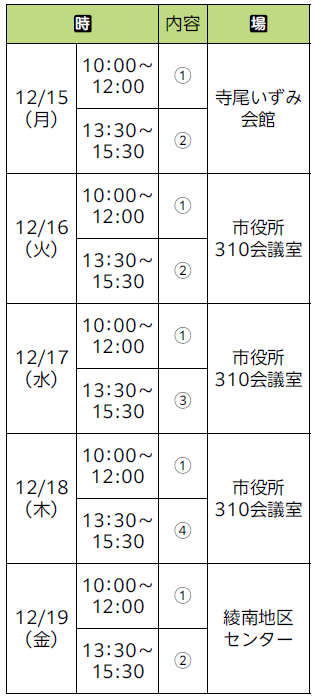 日時・場所:表のとおり