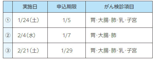 ※検診日時・項目によっては予約枠が終了している場合がありますのでご了承ください